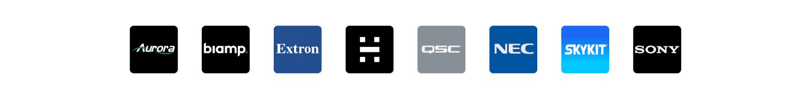 Aurora • Biamp • Extron • Huddly • QSC • NEC (Sharp) • Skykit • Sony
